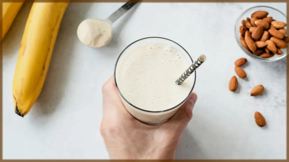 - Lunch: Drink a banana smoothie made with protein powder and milk.